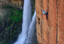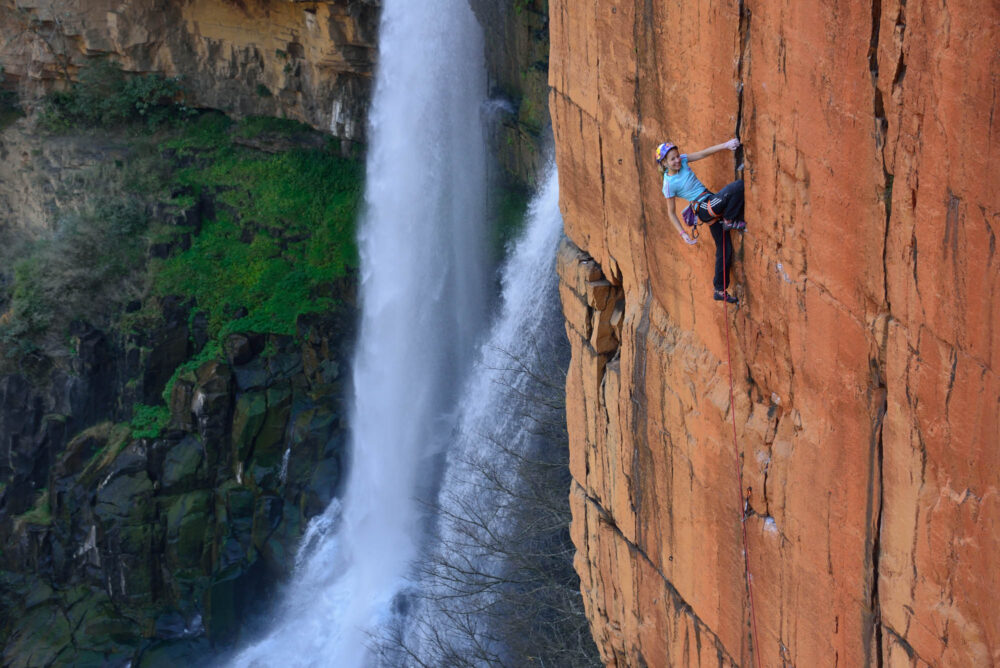 Waterval Boven est l’un des meilleurs sites d’escalade sportive de l’Afrique. Une immense chaîne de falaises en grès rouge qui s’étend sur plusieurs kilomètres. On y trouve pas moins de 800 voies sur des murs bien verticaux voir déversants dans un décor impressionnant de cascades au beau milieu de la flore et la faune africaine. La marche d’approche est facile pour la grande partie des secteurs.   La base des voies est majoritairement à l’ombre tandis que de leur sommet la vue sur les vallées et collines avoisinantes est à couper le souffle!  Le style de grimpe vous demandera une certaine endurance ainsi qu’un jeu de pieds et de doigts assez précis! Le rocher, un grès compact comme on en trouve rarement, varie entre les tons rouges et oranges et offre de belles prises. Tous seront choyés de choisir soit entre des fissures rectilignes ou des arcs sculptés.  À noter que la falaise est la bordure d’un immense plateau ainsi plusieurs voies sortent littéralement au beau milieu de nulle part!