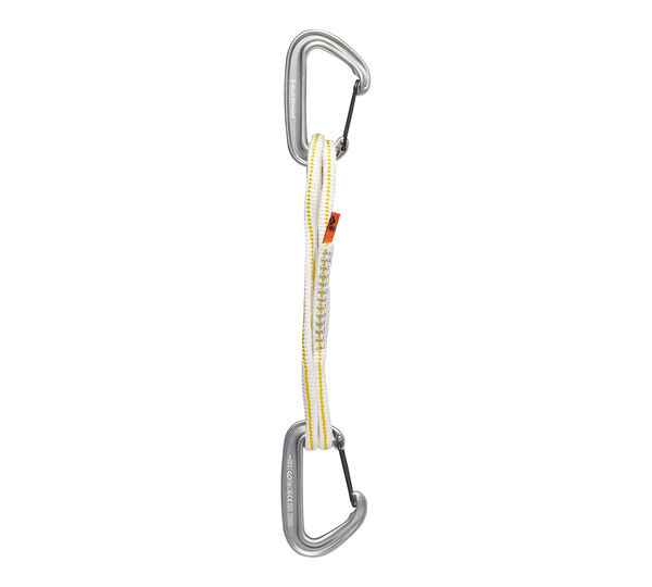 Featuring two new MiniWire carabiners, which are the lightest, fully-functional carabiner in the Black Diamond line-up and a 60 cm (ie. Shoulder length) 8mm tubular 100% Dynex runner that’s light, abrasion-resistant and absorbs less water than nylon, the MiniWire is ideal for mountain missions when light is right. Lightweight MiniWire carabiners 8mm, 60 cm tubular 100% Dynex Runner in an alpine quickdraw configuration Usable as an alpine quickdraw or a full-length sling for extending placements Weight : 75 g (2.6 oz) Closed Gate Strength : 20 kN (4,496 lbf) Open Gate Strength : 7 kN (1,574 lbf) Minor Axis Strength : 7 kN (1,574 lbf)