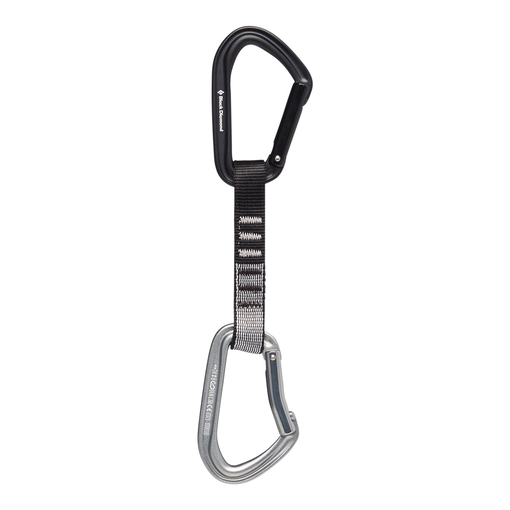 Featuring two new HotForge carabiners-one straight gate on the top and a colored bent gate on the bottom for an added visual target-as well as a durable Polyester Dogbone, the Black Diamond HotForge Quickdraw is our top value in full keylock functionality. The light, smooth-clipping design of the HotForge carabiners, combined with a hot-forged, lighter-weight construction, eliminates snags whether you’re cranking on sport routes or extending gear placements. The integrated Straitjacket insert keeps the bottom biner in the optimal clipping position.
