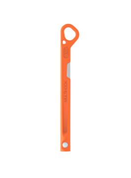 Hook that allows a cord to be threaded in order to make a V-thread ice anchor, up to 25 cm in depth. Contains a serrated blade easily cuts ropes and cords. The tool can also be used to clear the tube of an ice screw. Can be folded for stowage in a pocket and can be clipped for easy transport. Material(s): stainless steel, nylon Weight: 40 g